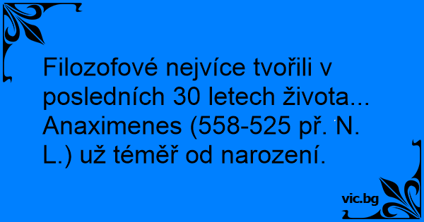 Filozofové nejvíce tvořili v posledních 30 letech života... Anaximenes (558-525 př. N. L.) už téměř od narození.
