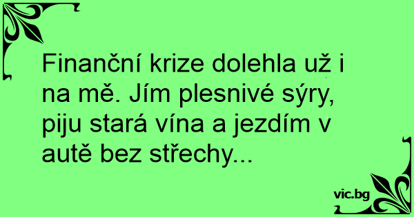 Finanční krize dolehla už i na mě. Jím plesnivé sýry, piju stará vína a jezdím v autě bez střechy...