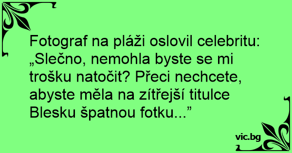 Fotograf na pláži oslovil celebritu: „Slečno, nemohla byste se mi trošku natočit? Přeci nechcete, abyste měla na zítřejší titulce Blesku špatnou fotku...”