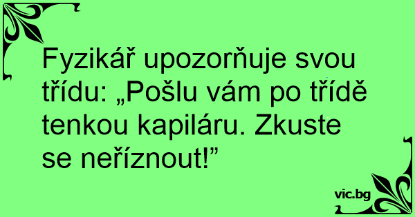 Fyzikář upozorňuje svou třídu: „Pošlu vám po třídě tenkou kapiláru. Zkuste se neříznout!”