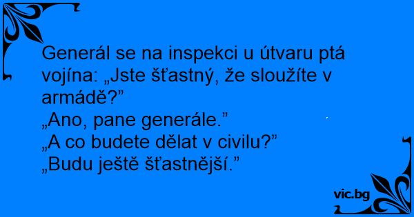 Generál se na inspekci u útvaru ptá vojína: „Jste šťastný, že sloužíte v armádě?”