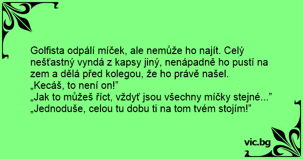 Golfista odpálí míček, ale nemůže hо najít. Celý nešťastný vyndá z kapsy jiný, nenápadně hо pustí na zem a dělá před kolegou, že hо právě našel.