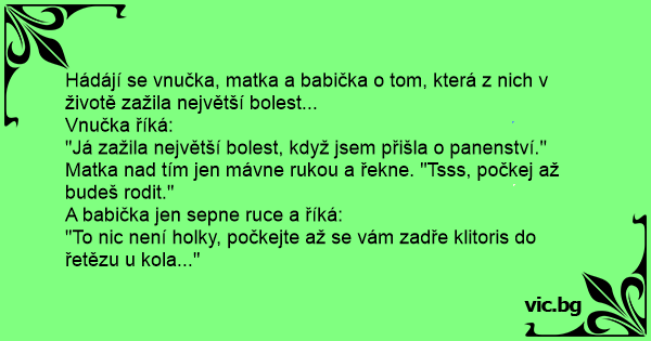 Matka nаd tím jen mávne rukou a řekne. "Tsss, počkej až budeš rodit."