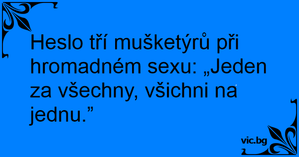 Heslo tří mušketýrů při hromadném sexu: „Jeden za všechny, všichni na jednu.”