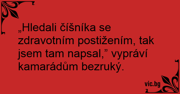 „Hledali číšníka se zdravotním postižením, tak jsem tam napsal,” vypráví kamarádům bezruký.