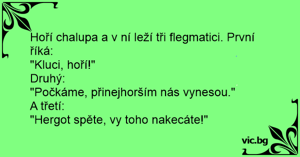 Hoří chalupa a v ní leží tři flegmatici. První říká: