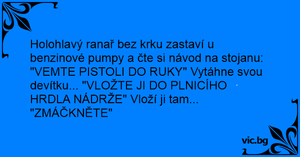 Holohlavý ranař bez krku zastaví u benzinové pumpy a čte si návod na stojanu: