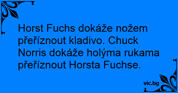 Horst Fuchs dokáže nožem přeříznout kladivo. Chuck Norris dokáže holýma rukama přeříznout Horsta Fuchse.