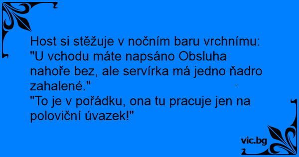 "U vchodu máte napsáno Obsluha nahoře bez, ale servírka má jedno ňadro zahalené."