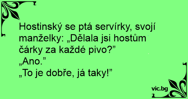 Hostinský se ptá servírky, svojí manželky: „Dělala jsi hostům čárky za každé pivo?”