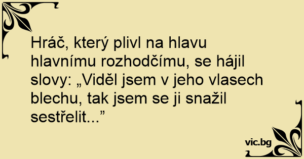 Hráč, který plivl na hlavu hlavnímu rozhodčímu, se hájil slovy: „Viděl jsem v jeho vlasech blechu, tak jsem se ji snažil sestřelit...”