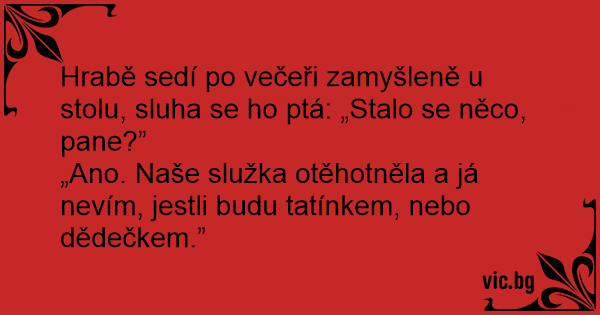 „Ano. Naše služka otěhotněla a já nevím, jestli budu tatínkem, nebo dědečkem.”