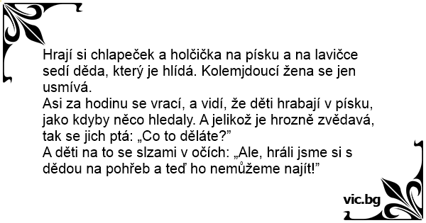 A děti na to se slzami v očích: „Ale, hráli jsme si s dědou na pohřeb a teď hо nemůžeme najít!”