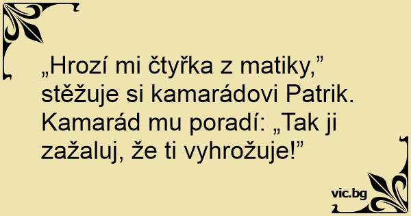 „Hrozí mi čtyřka z matiky,” stěžuje si kamarádovi Patrik.