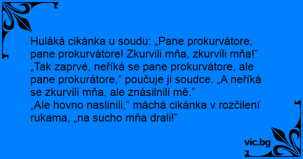 „Tak zaprvé, neříká se pane prokurvátore, ale pane prokurátore,” poučuje ji soudce. „A neříká se zkurvili mňa, ale znásilnili mě.”