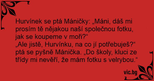 Hurvínek se ptá Máničky: „Máni, dáš mi prosím tě nějakou naší společnou fotku, jak se koupeme v moři?“