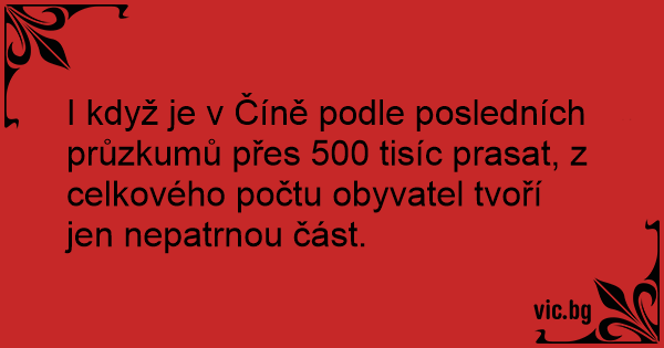 I když je v Číně podle posledních průzkumů přes 500 tisíc prasat, z celkového počtu obyvatel tvoří jen nepatrnou část.