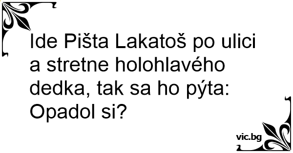 Ide Pišta Lakatoš po ulici a stretne holohlavého dedka, tak sa hо pýta: Opadol si?