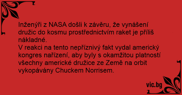 V reakci na tento nepříznivý fakt vydal americký kongres nařízení, aby byly s okamžitou platností všechny americké družice ze Země na orbit vykopávány Chuckem Norrisem.