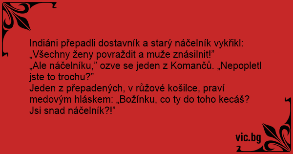 „Ale náčelníku,” ozve se jeden z Komančů. „Nepopletl jste to trochu?”