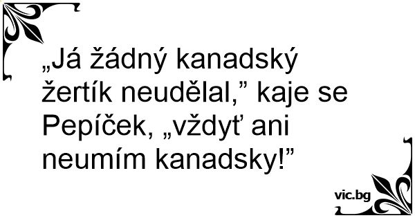 „Já žádný kanadský žertík neudělal,” kaje se Pepíček, „vždyť ani neumím kanadsky!”