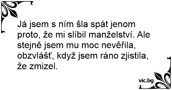 Já jsem s ním šla spát jenom proto, že mi slíbil manželství. Ale stejně jsem mu moc nevěřila, obzvlášť, když jsem ráno zjistila, že zmizel.