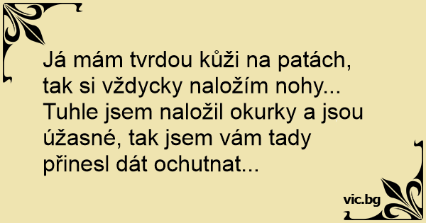 Já mám tvrdou kůži na patách, tak si vždycky naložím nohy... Tuhle jsem naložil okurky a jsou úžasné, tak jsem vám tady přinesl dát ochutnat...