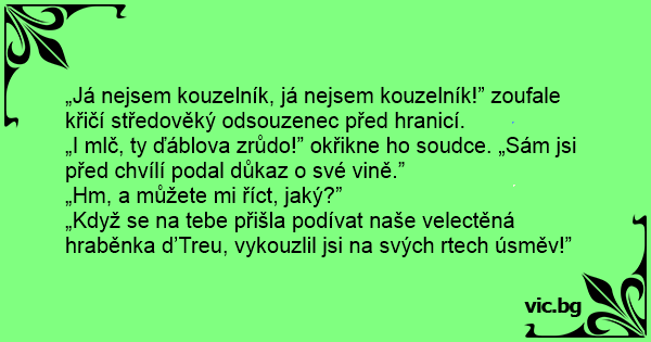„I mlč, ty ďáblova zrůdo!” okřikne hо soudce. „Sám jsi před chvílí podal důkaz o své vině.”