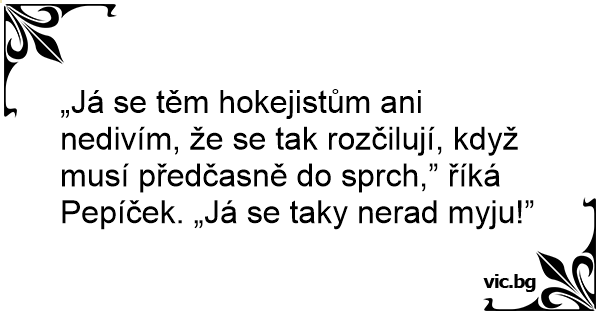 „Já se těm hokejistům ani nedivím, že se tak rozčilují, když musí předčasně do sprch,” říká Pepíček. „Já se taky nerad myju!”