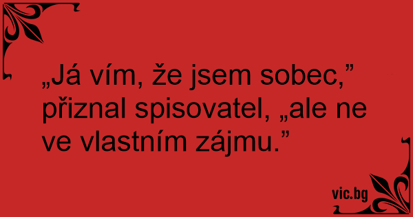 „Já vím, že jsem sobec,” přiznal spisovatel, „ale ne ve vlastním zájmu.”
