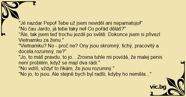 "Vietnamku? No - proč ne? Ony jsou skromný, tichý, pracovitý a docela rozumný, ne?"