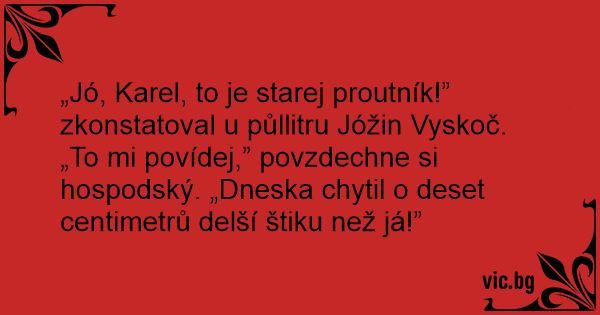 „Jó, Karel, to je starej proutník!” zkonstatoval u půllitru Jóžin Vyskoč.
