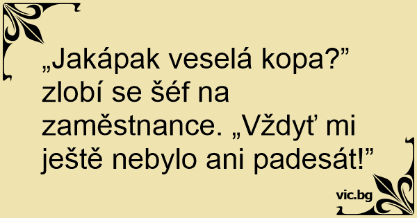 „Jakápak veselá kopa?” zlobí se šéf na zaměstnance. „Vždyť mi ještě nebylo ani padesát!”