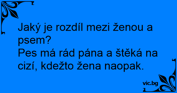 Каква е разликата между жената и кучето? Кучето харесва господаря си и лае по непознати, а жената - обратно.