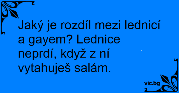 Jaký je rozdíl mezi lednicí a gayem? Lednice neprdí, když z ní vytahuješ salám.