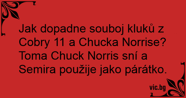 Jak dopadne souboj kluků z Cobry 11 a Chucka Norrise? Toma Chuck Norris sní a Semira použije jako párátko.