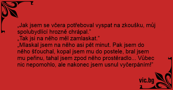 „Jak jsem se včera potřeboval vyspat na zkoušku, můj spolubydlící hrozně chrápal.”
