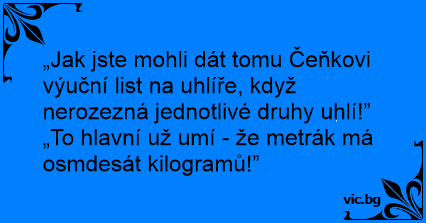 „Jak jste mohli dát tomu Čeňkovi výuční list na uhlíře, když nerozezná jednotlivé druhy uhlí!”