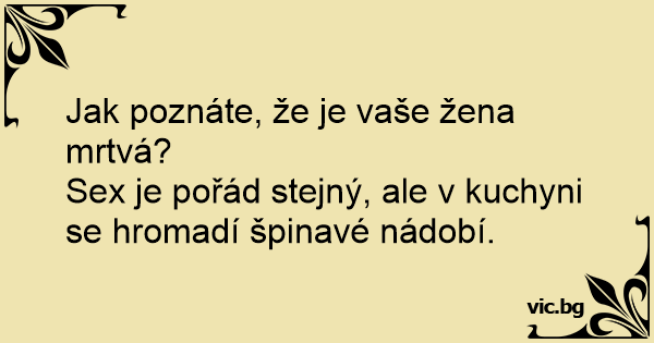 - Comment savoir si votre femme est morte? Vous baisez toujours autant, mais la vaisselle sale s'empile.