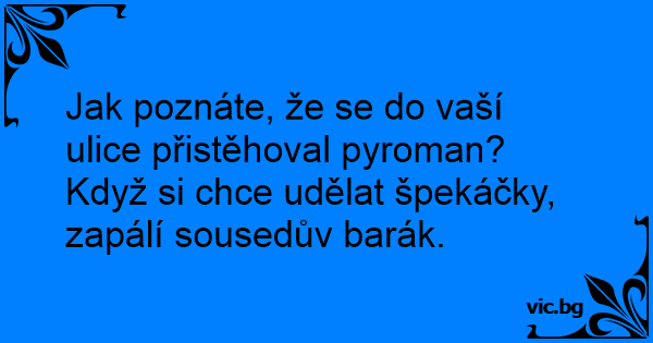 Když si chce udělat špekáčky, zapálí sousedův barák.