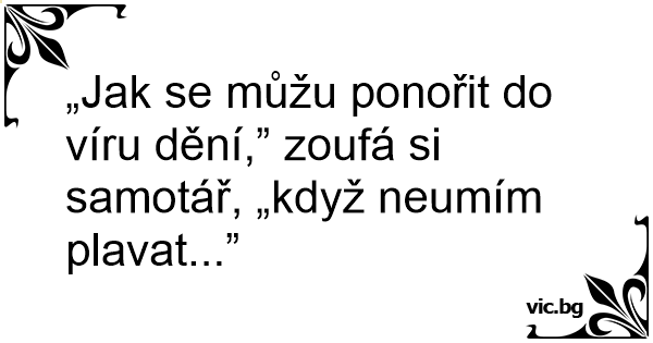 „Jak se můžu ponořit do víru dění,” zoufá si samotář, „když neumím plavat...”