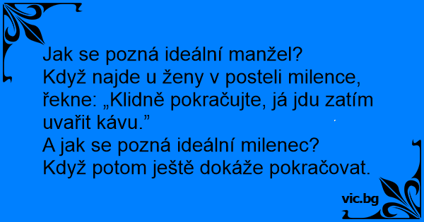 Když najde u ženy v posteli milence, řekne: „Klidně pokračujte, já jdu zatím uvařit kávu.”