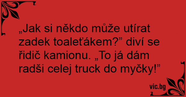 „Jak si někdo může utírat zadek toaleťákem?” diví se řidič kamionu. „To já dám radši celej truck do myčky!”