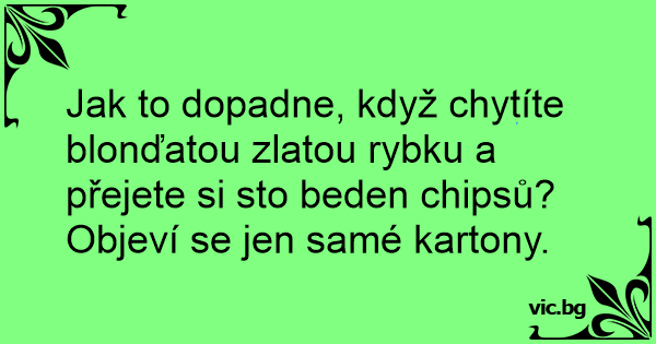 Jak to dopadne, když chytíte blonďatou zlatou rybku a přejete si sto beden chipsů?