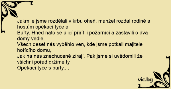 Buřty. Hned nato se ulicí přiřítili požárníci a zastavili o dva domy vedle.