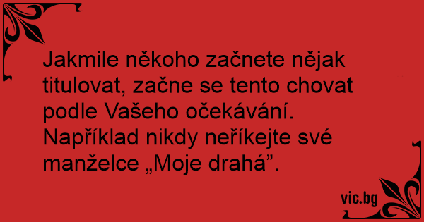 Jakmile někoho začnete nějak titulovat, začne se tento chovat podle Vašeho očekávání. Například nikdy neříkejte své manželce „Moje drahá”.