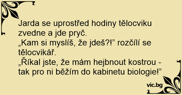 „Říkal jste, že mám hejbnout kostrou - tak pro ni běžím do kabinetu biologie!”