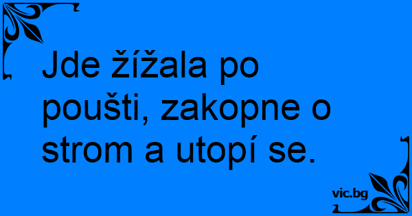 Jde žížala po poušti, zakopne o strom a utopí se.