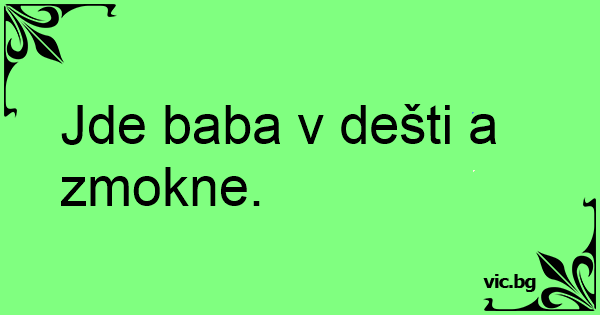 Jde baba v dešti a zmokne.