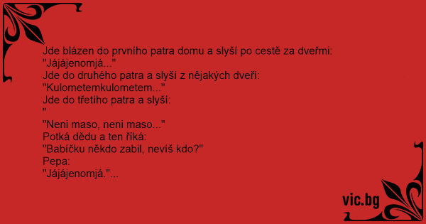 Jde blázen do prvního patra domu a slyší po cestě za dveřmi:
